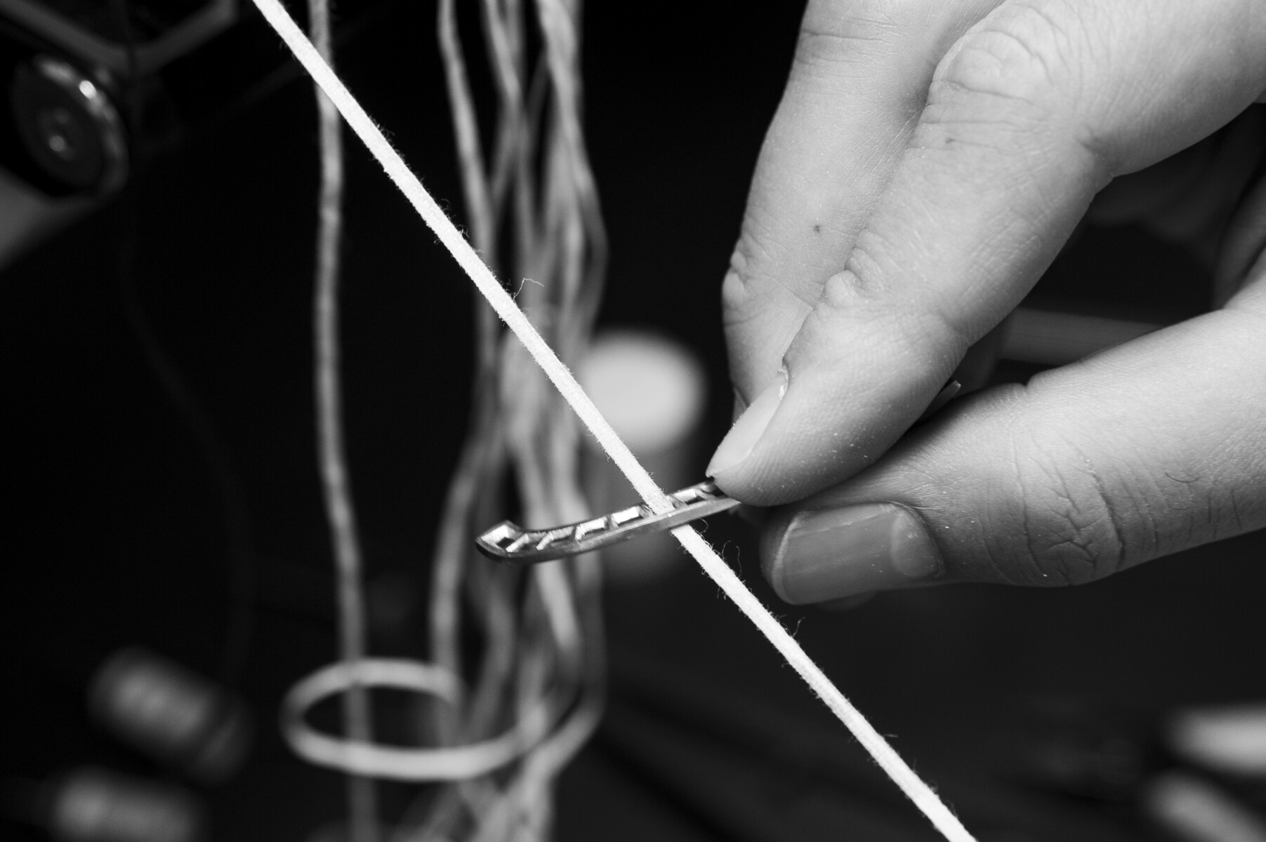 Chaque chaine est constituée d’un très grand nombre de maillons, qui doivent tous être parfaitement soudés les uns entre les autres, je me dois donc de vérifier le bon réglage de la tricoteuse.